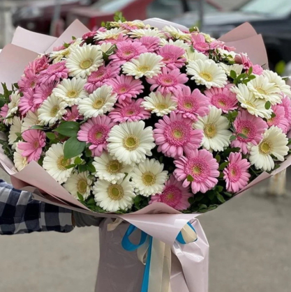 Букет из 101 белой и розовой герберой | Купить в Минске